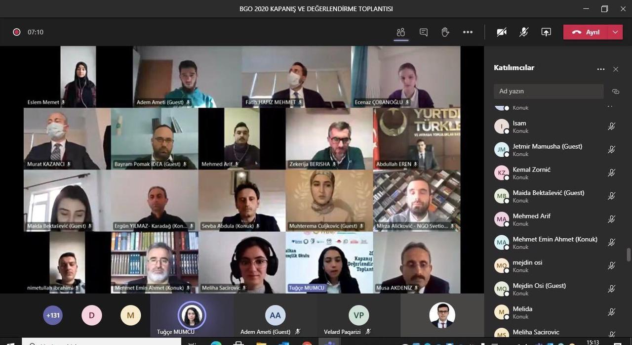 Yurtdışı Türkler ve Akraba Topluluklar Başkanlığı’nın (YTB) desteği ile Balkan ülkelerinde gerçekleştirilen Balkan Gençlik Okulu’nun (BGO) 2020 Değerlendirme ve Kapanış Programı düzenlendi. YTB’nin destekleriyle 2018’den beri hayata geçirilen ve farklı Balkan ülkelerinden gençlerin katılım gösterdiği Balkan Gençlik Okulu’nun 2020 Değerlendirme ve Kapanış Programı Pandemi dolayısıyla online olarak yapıldı.